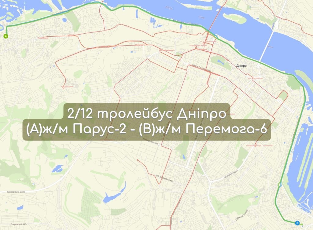 Остановки троллейбуса №2/12 в Днепре